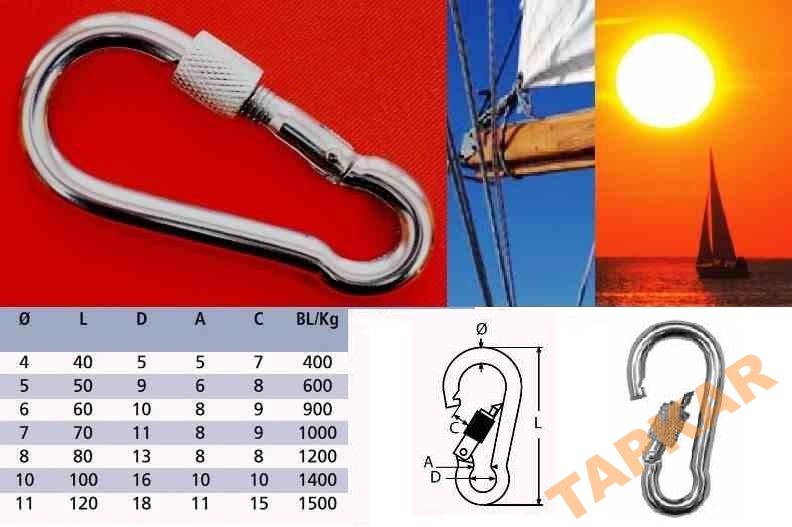 Karabińczyk 13X160 z kauszą i ze specjalną nakrętką zabezpieczającą przed samoczynnym otwarciem.