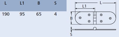 814125 ZAWIAS 190X65 SYMETRYCZNY NIERDZEWNY A4