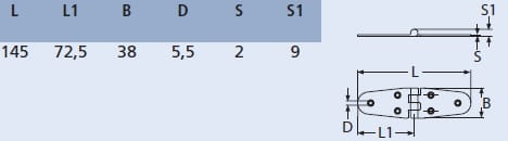 8570 ZAWIAS SYMETRYCZNY 145X38 NIERDZEWNY A2
