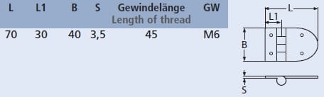 8929 ZAWIAS 70X40 ZE ŚRUBAMI M6X45 NIERDZEWNY A4