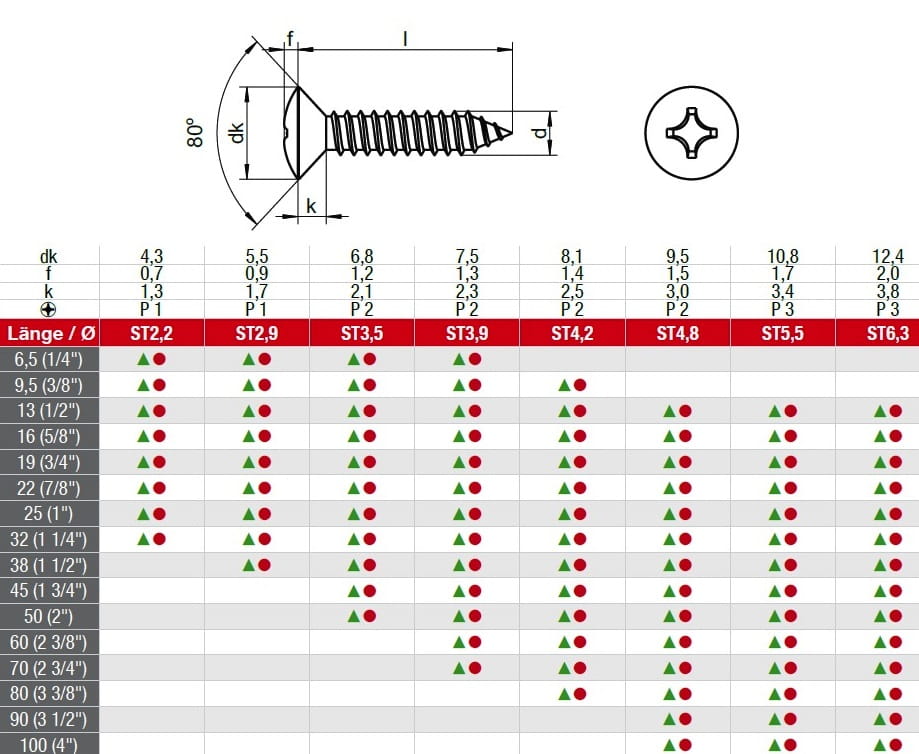 BLACHOWKRĘT SOCZEWKA-STOŻEK DIN 7983 INOX A2 4,2X38