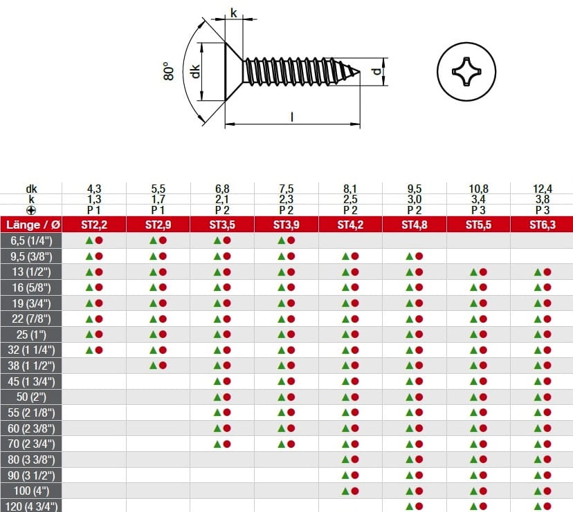BLACHOWKRĘT STOŻEK DIN 7982 INOX A2 3,5X9,5