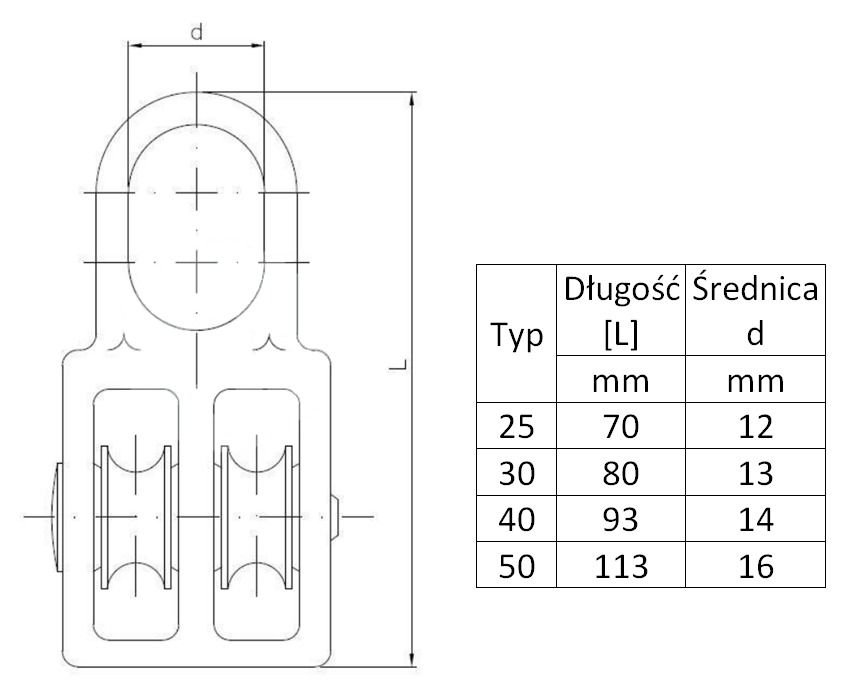 Bloczek podwójny z mocną nylonową rolką