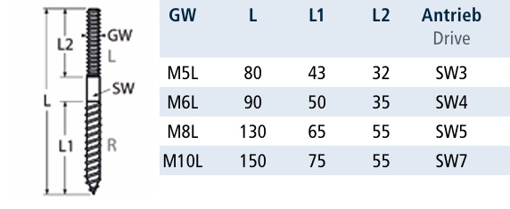DWUGWINT METAL-DREWNO Z LEWYM GWINTEM
