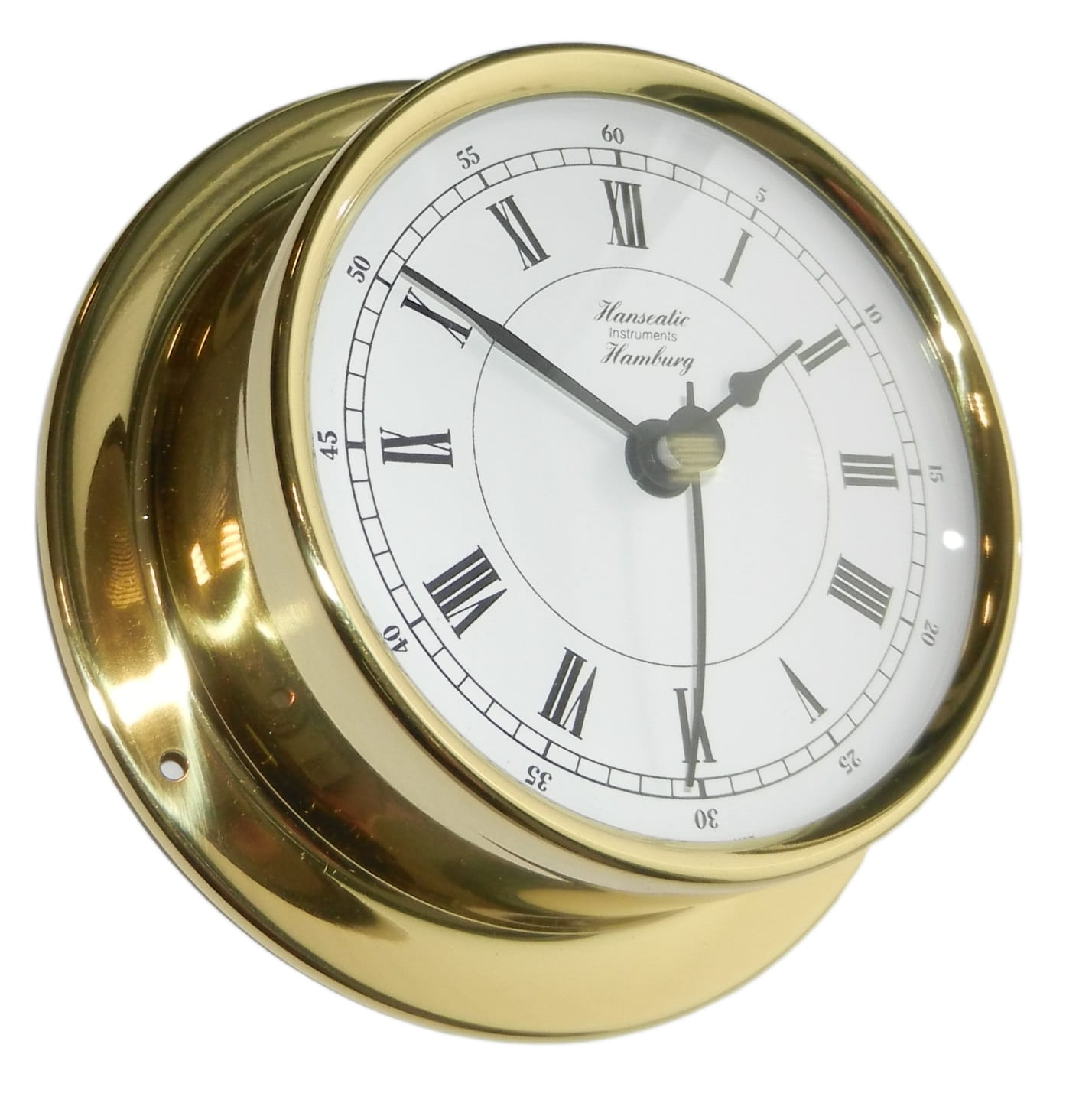 Kwarcowy zegar okrętowy mosiężny (na baterie) z tarczą o średnicy 76mm. Przeznaczony dla jachtów i innych małych jednostek.