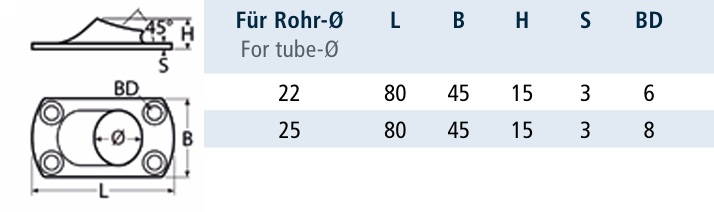 GNIAZDO 8615 INOX A4 45° DO RURY FI 25