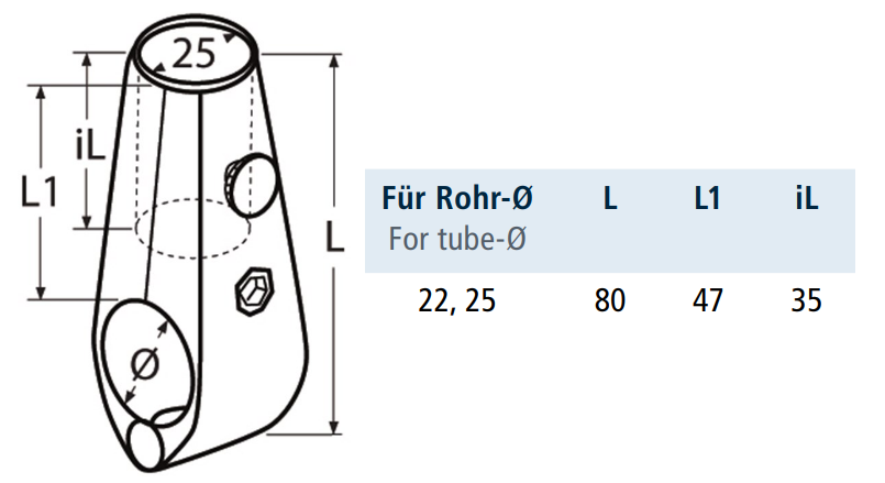 GNIAZDO FLAGSZTOKA 814114 NA RURĘ FI 22-25 INOX A4
