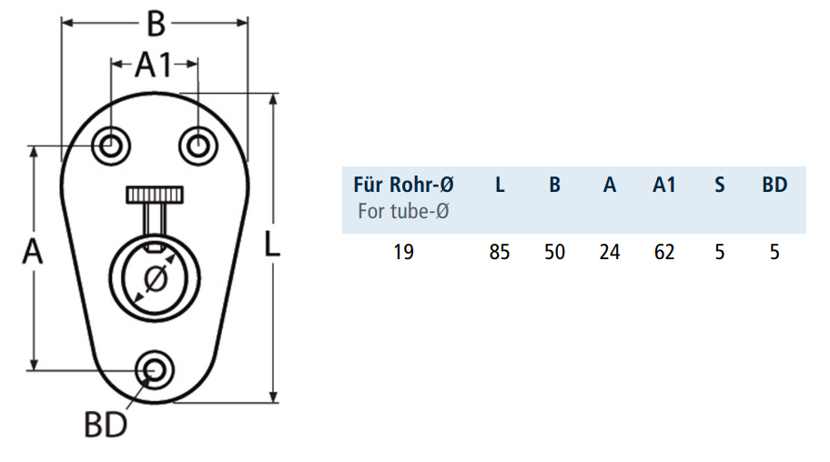 GNIAZDO FLAGSZTOKA FLAGOWNIKA 8654 INOX A4 FI 19