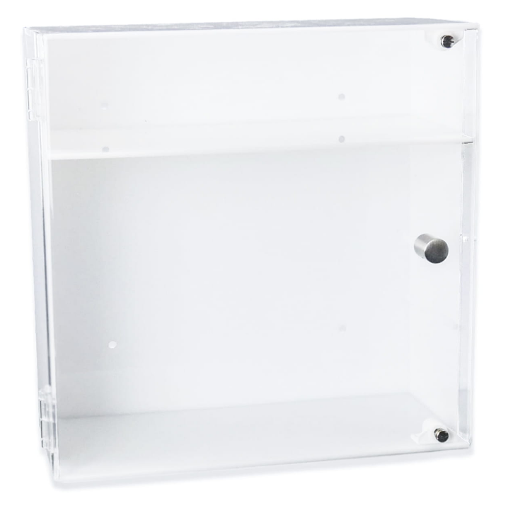 Pleksi z miejscem na moduł - to gablota przeznaczona do przestrzeni biurowych oraz takich, w których elegancki wygląd gra istotną rolę. Ma minimalistyczną formę, dzięki czemu nie zajmuje dużo miejsca i jest łatwa do wkomponowania we wnętrze, w którym się znajduje. Jej niewielkie rozmiary pozwalają na montaż nawet na wąskich słupach i występach. Przezroczysty materiał, z którego jest wykonana, pozwala na ciągła kontrolę stanu urządzania bez konieczności wyciągania go z gabloty.