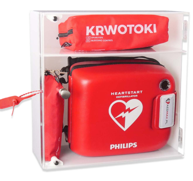 Rekomendujemy zakup gabloty wraz z defibrylatorem