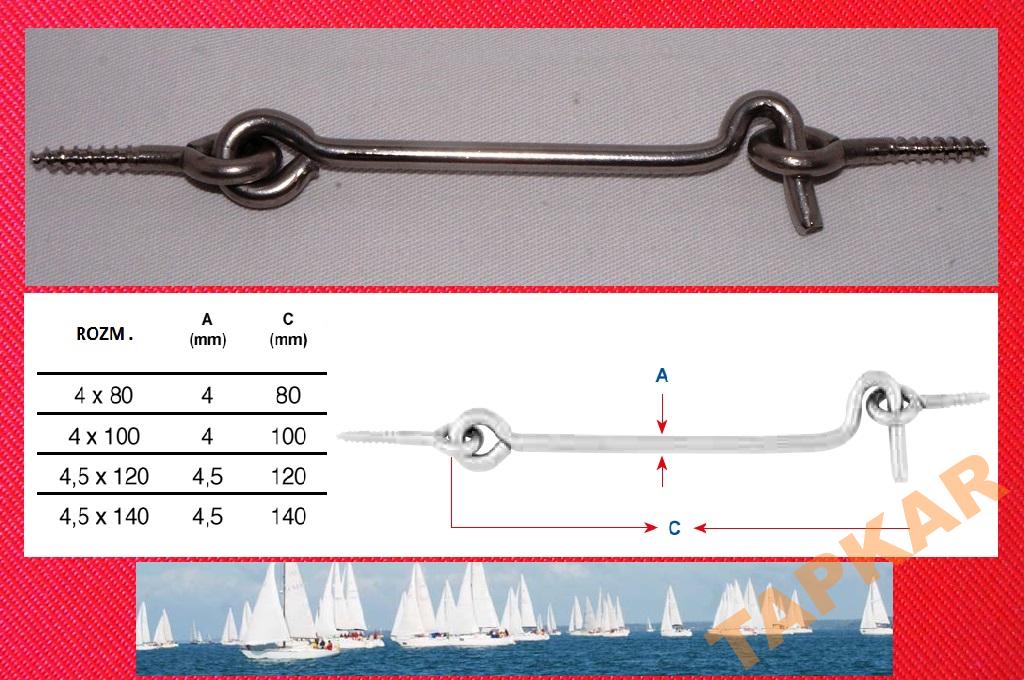 Haczyk kabinowy 4,5x120 z oczkowymi wkrętami do drewna.