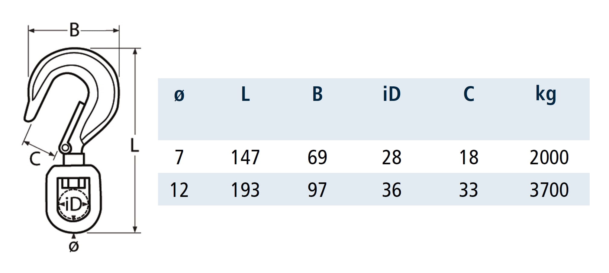 Hak obrotowy z krętlikiem oraz specjalną blokadą osadzoną na silnej sprężynie, która zapobiegnie przypadkowemu zsunięciu się ładunku.