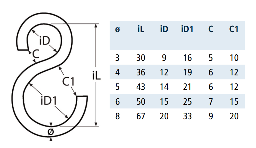 HAK TYP "S" ASYMETRYCZNY ESKA INOX A4 M8