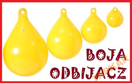 Pneumatyczne pływaki z PCW w kształcie łzy, ze wzmocnionym uchem, stosowane jako boje znacznikowe lub odbijacze. Kolor żółty.
