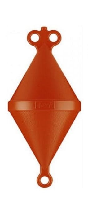 Boje cumownicze kształcie dwóch stożków złączonych podstawami. Wykonane z twardego i wytrzymałego tworzywa. W dolnej części jedno ucho a w górnej dwa.