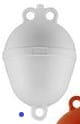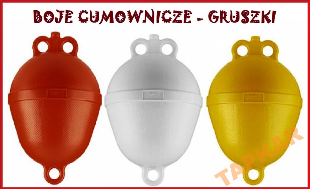 Boje z tworzywa sztucznego w kształcie gruszki. Stosowane do oznakowania kąpielisk lub jako boje cumownicze. Kolor biały.