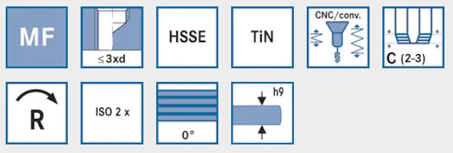 Do wykonywania gwintów metrycznych w otworach przelotowych i nieprzelotowych na maszynach CNC i maszynach konwencjonalnych w stali, stali nierdzewnej i metalach nieżelaznych, do 1300 N/mm², z rozszerzaniem materiału > 10%.