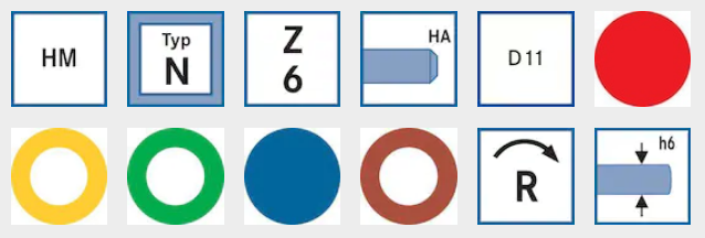 | Grupy materiałowe dla wartości cięcia | Opis dotyczący DIN | Klasa wytrzymałości [N/mm²] | Nr materiału | Vc [m/min] | fz [mm/T] przy średnicy | Przydatność |