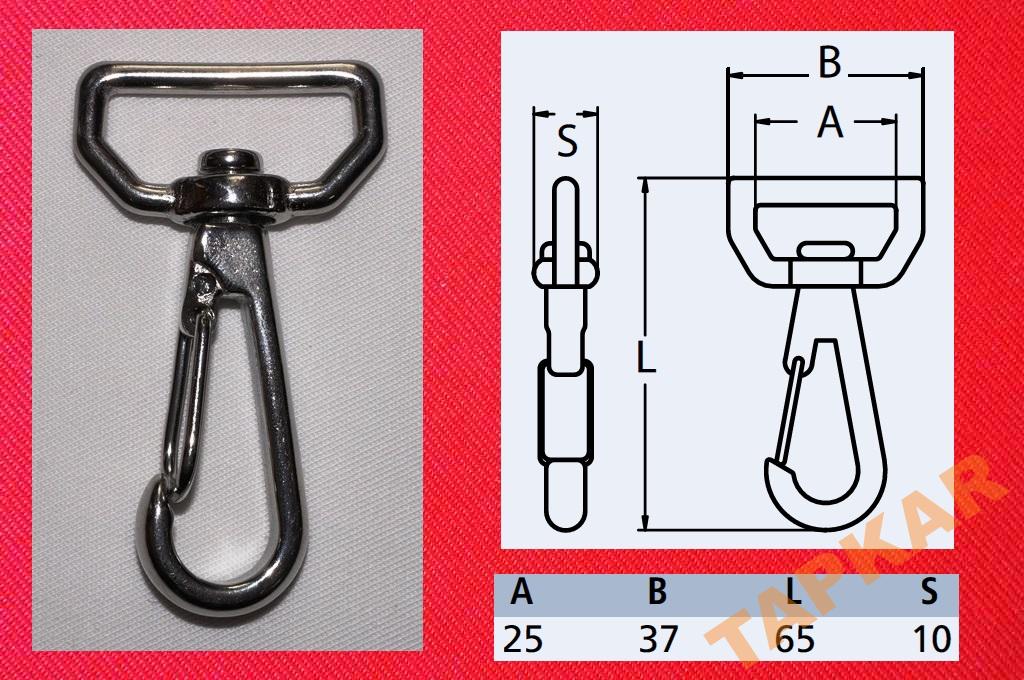 KARABIŃCZYK 25MM DO BIMINI Z KRĘTLIKIEM NIERDZEWNY A2