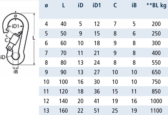 Karabińczyk 4x40 ze specjalną nakrętką zabezpieczającą przed samoczynnym otwarciem.