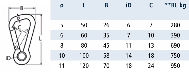 KARABIŃCZYK ASYMETRYCZNY Z KAUSZĄ W CAŁOŚCI WYKONANA ZE STALI KWASOODPORNEJ A4 - 316