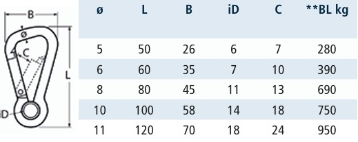KARABIŃCZYK ASYMETRYCZNY Z KAUSZĄ W CAŁOŚCI WYKONANA ZE STALI KWASOODPORNEJ A4 - 316