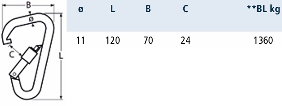 KARABIŃCZYK 8953 ASYMETRYCZNY Z ZABEZPIECZENIEM INOX A4 11X120