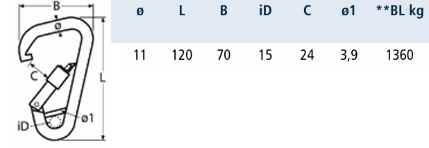 KARABIŃCZYK 8954 ASYMETRYCZNY Z MOSTKIIEM I Z ZABEZPIECZENIEM INOX A4 11X120