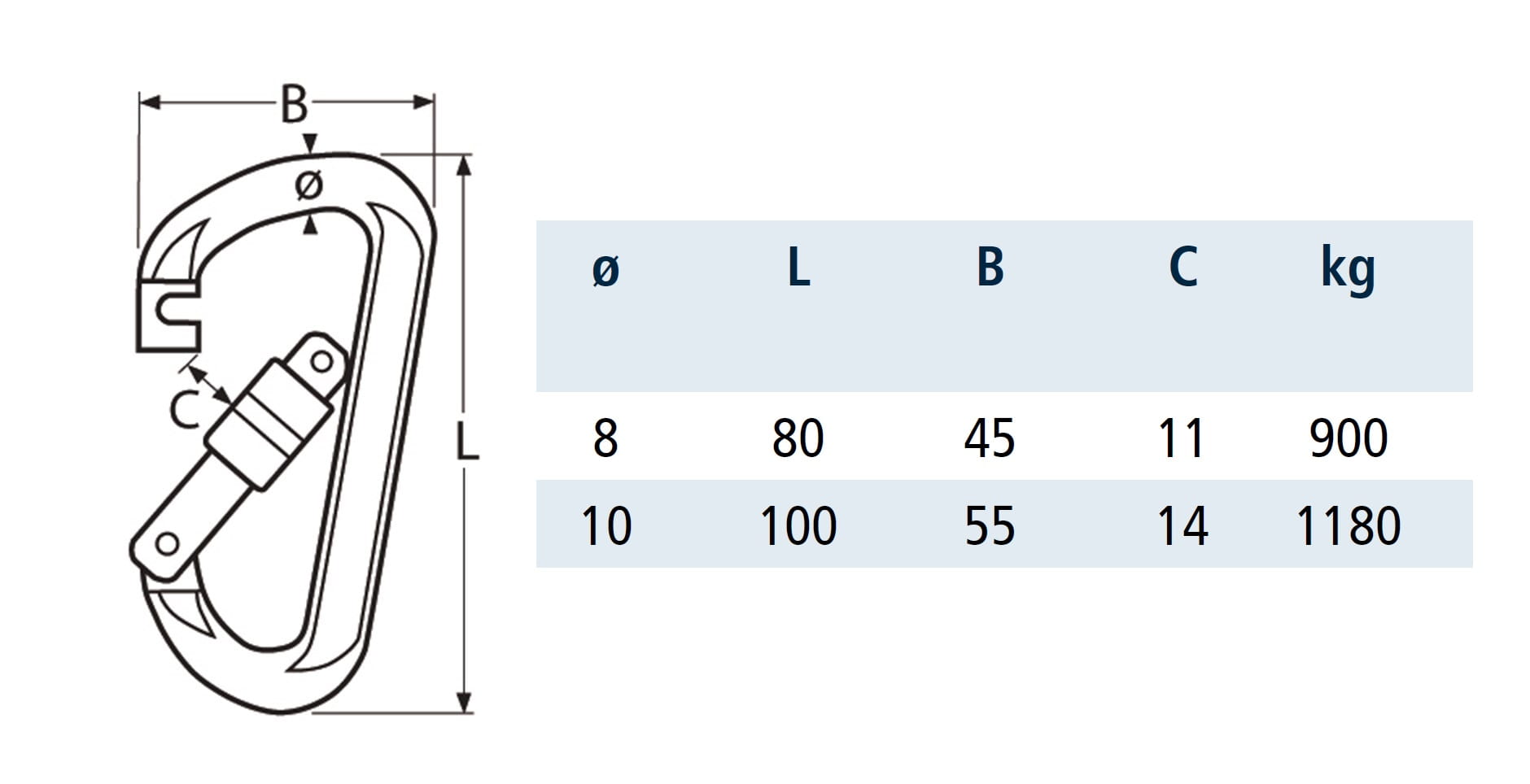 KARABIŃCZYK ZE SPRĘŻYNĄ, ODCIĄGANY W CAŁOŚCI WYKONANA ZE STALI KWASOODPORNEJ A4 - 316