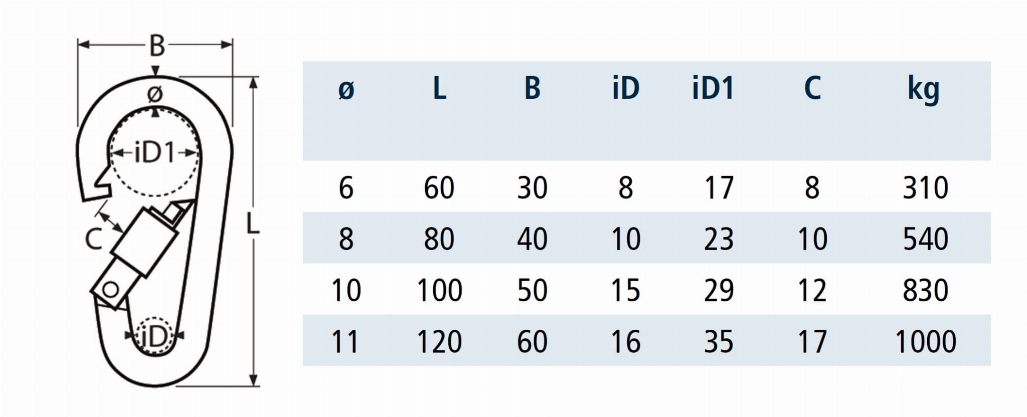 KARABIŃCZYK 8958 OWALNY GRUSZKA Z ZABEZPIECZENIEM INOX A4 10X100
