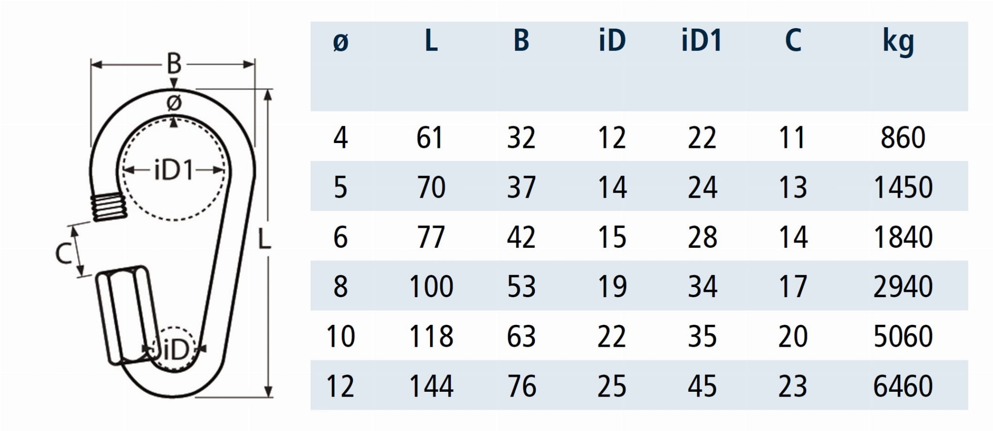 OGNIWO ŁAŃCUCHOWE ASYMETRYCZNE Z NAKRĘTKĄ KARABIŃCZYK W CAŁOŚCI WYKONANA ZE STALI KWASOODPORNEJ A4 - 316