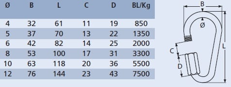 OGNIWO ŁAŃCUCHOWE ASYMETRYCZNE Z NAKRĘTKĄ KARABIŃCZYK W CAŁOŚCI WYKONANA ZE STALI KWASOODPORNEJ A4 - 316