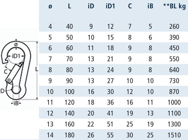Karabińczyk tradycyjny 12x140 w całości wykonany ze stali ocynkowanej.
