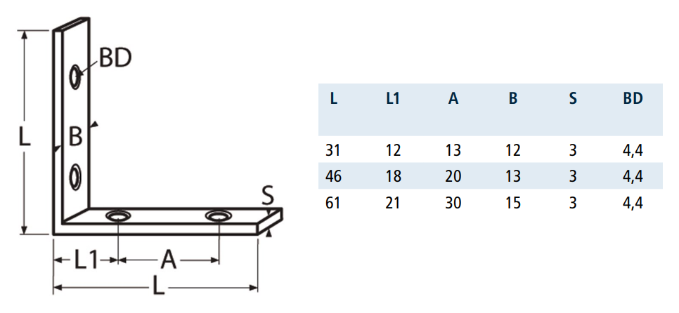 KĄTOWNIK PROSTY INOX A2 46X13X3