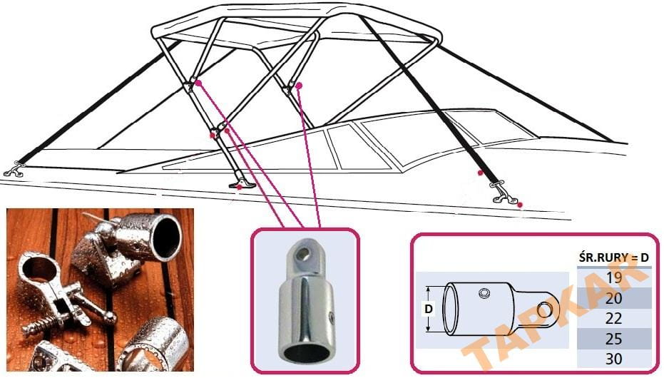 Zaślepka nierdzewna na przegub do rur o średnicy 30mm do składanego zadaszenia na motorówce lub jachcie.