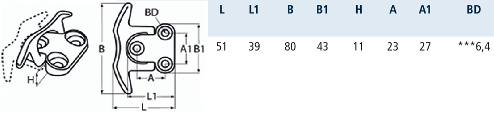 Knaga kładziona polerowana na ,,lustro" w całości wykonana ze stali kwasoodpornej A4-316