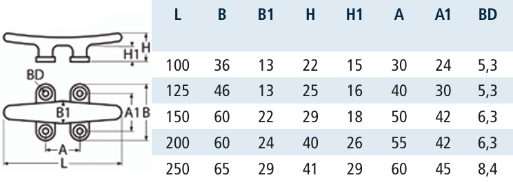 Knaga z czterema otworami o całkowitej długości 250mm w całości wykonana ze stali kwasoodpornej.