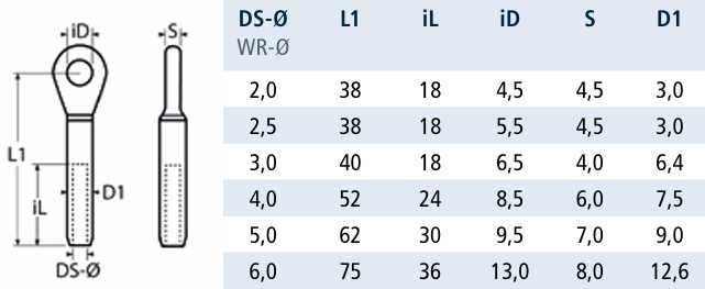 KOŃCÓWKA OCZKOWA KOL MINI 8469 DO ZAWALCOWANIA / ZACISKANIA / ZAPRASOWANIA INOX A4 FI 2MM