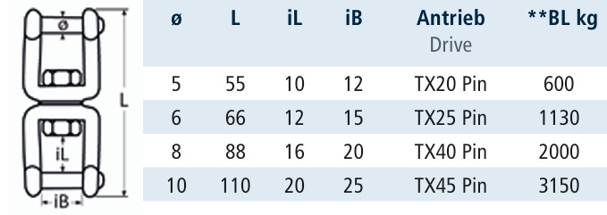 KRĘTLIK 815148 SZEKLA-SZEKLA INOX A4 TORX 45 +PIN 10X110 MM