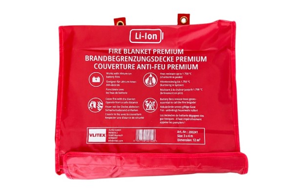 Koc gaśniczy PREMIUM 3 x 4m VLITEX - to specjalistyczne narzędzie do szybkiego i skutecznego gaszenia średnich pożarów, zwłaszcza tych związanych z urządzeniami typu : rower elektryczny, maszyna czyszcząca, wózek golfowy, elektryczny wózek widłowy lub podobne. Przykrycie źródła pożaru pozwala skutecznie odciąć dopływ tlenu, ograniczyć płomienie, obniżyć temperaturę oraz zredukować emisję dymu i toksycznych gazów.