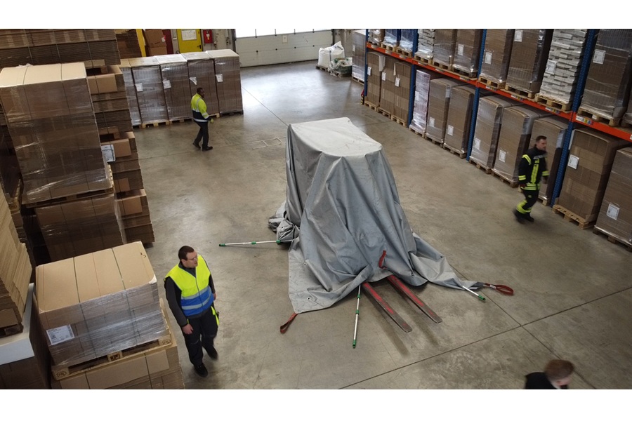 Koc gaśniczy PREMIUM 6 x 8m VLITEX do gaszenia wózków widłowych li-on, wielokrotnego użytku - 200286 + drążki teleskopowe, przelotki i torba - DIN SPEC 91489