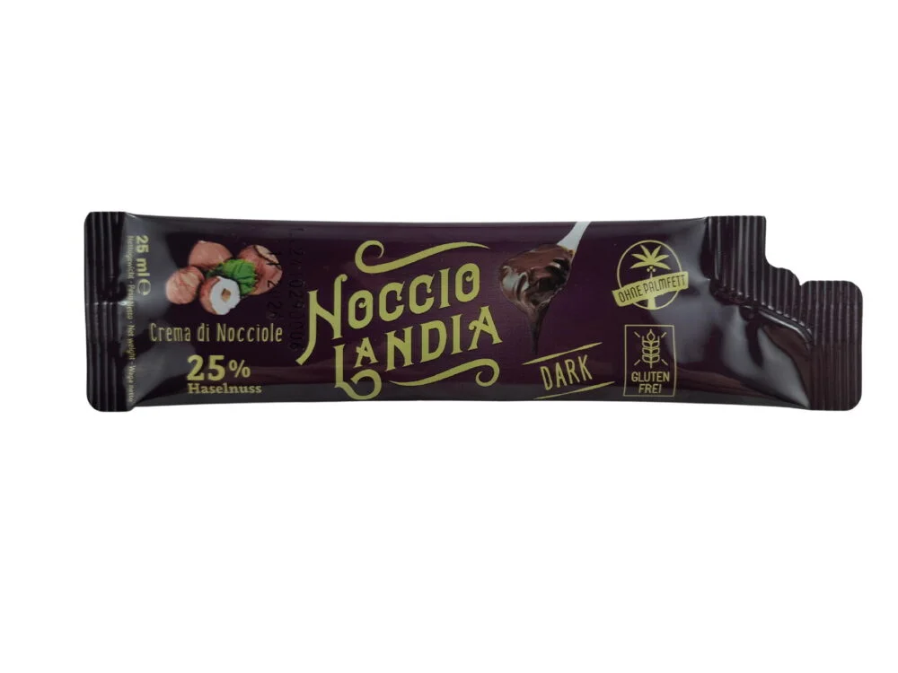 Wersja dark kremu orzechowo-kakaowego zawiera 25% piemonckich orzechów laskowych to produkt charakteryzujący się bardzo wyrazistym smakiem.