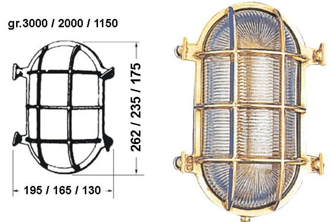 LAMPA OWALNA OLD MARINA Z OZDOBNĄ KRATKĄ OCHRONNĄ MOSIĄDZ M 3220350