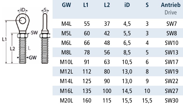 LEWA KOŃCÓWKA OCZKOWA 814864 Z NAKRĘTKĄ INOX A4 M5