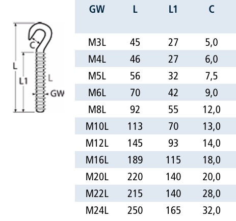 LEWA ŚRUBA 8436 HAKOWA DO ŚCIĄGACZAINOX A4 M12