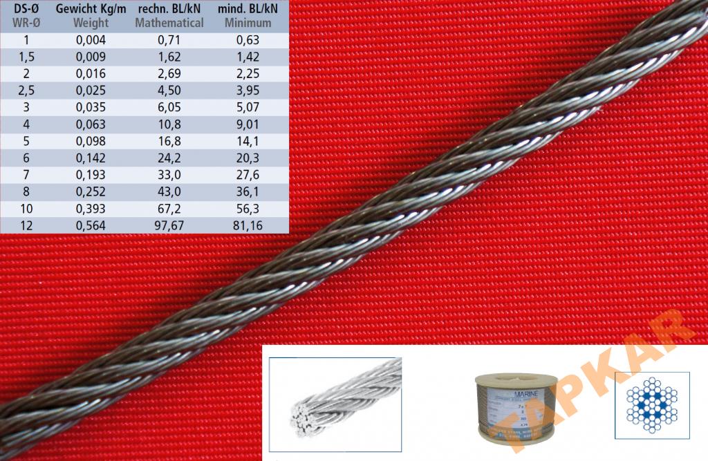 Lina o grubości 1 mm i splocie 7x7.