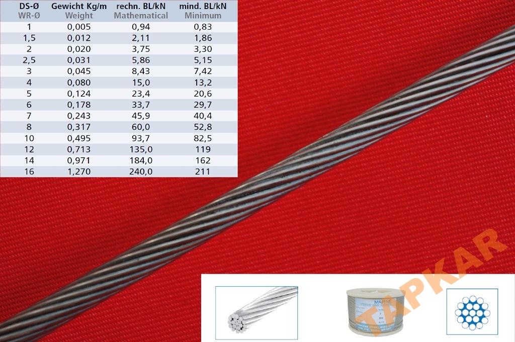 Lina o grubości 6 mm i Splocie 1x19.