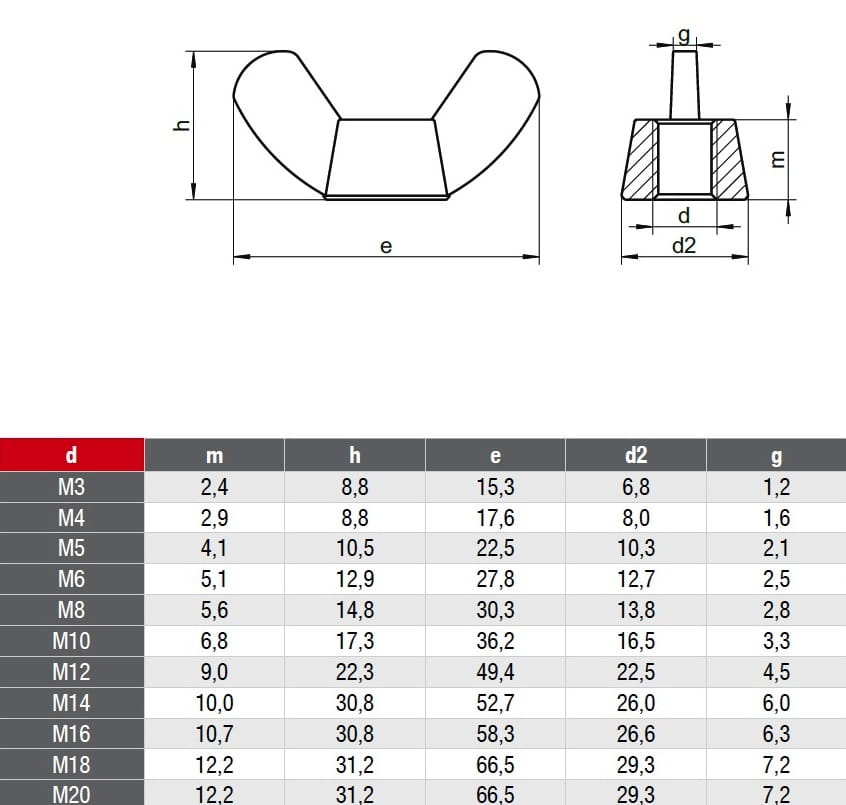 Nakrętka motylkowa skrzydełkowa DIN 315 - ROZMIAR JAK W TYTULE