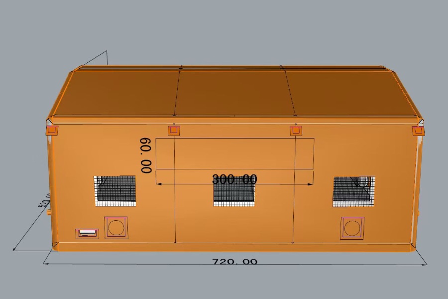 - wymiary: 7,2 x 5,2 x 3,2 m,