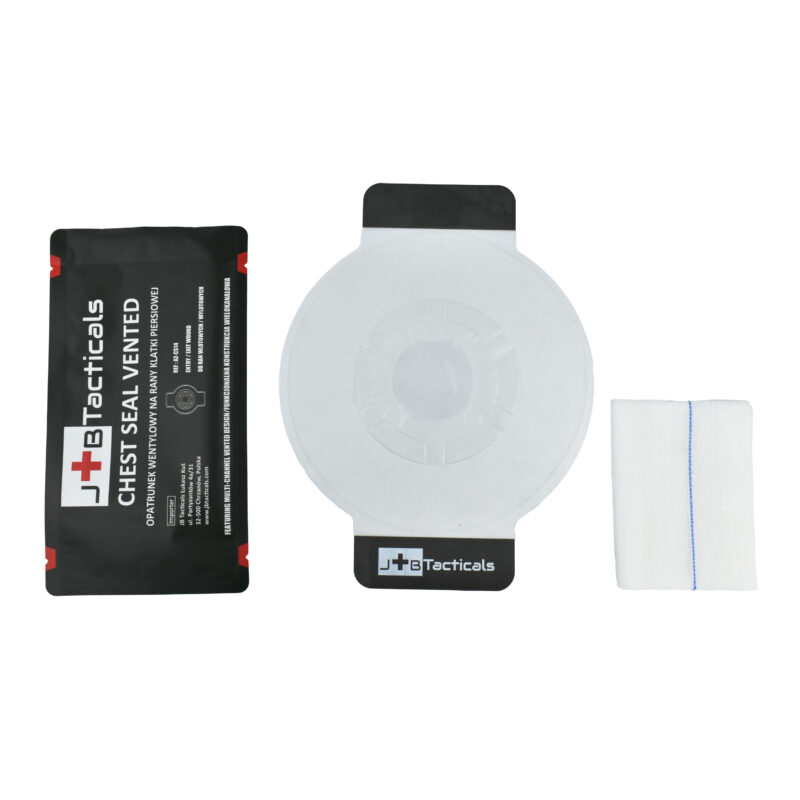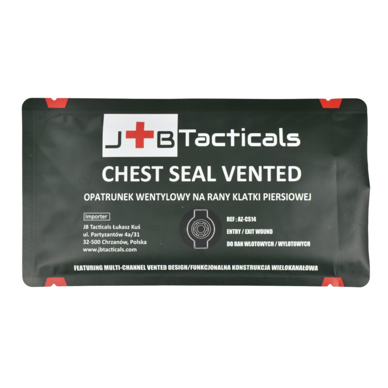 Opatrunek Wentylowy Chest Seal Vented AZ-CS14 JB Tacticals to profesjonalny opatrunek medyczny, który został stworzony z myślą o skutecznym opatrywaniu ran klatki piersiowej. Dzięki innowacyjnej technologii jednokierunkowego zaworu wentylowego produkt umożliwia usuwanie powietrza zalegającego w klatce piersiowej, co zmniejsza ryzyko odmy prężnej oraz blokuje dostęp powietrza z zewnątrz.